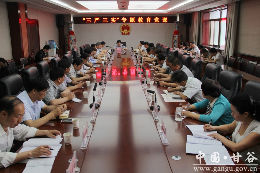 6月17日,甘谷县人大常委会党组举行“三严三实”专题教育党课,县人大常委会党组成员、副主任谢兴明、王百家、刘仰贤、刘永仁、李富国以讲党课的形式分别作了专题辅导报告,县人大常委会副主任韩金鼎,各委办负责人及机关党员干部,各乡镇人大主席、部分人大代表参加了专题教育党课。