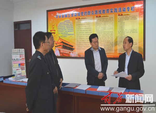 4月17日,县委书记贾忠慧深入到县国土资源局调研指导教育实践活动开展情况,就县国土资源局党的群众路线教育实践活动下一阶段工作提出指导性意见,县政协副主席、县委办主任郑建子参加调研。