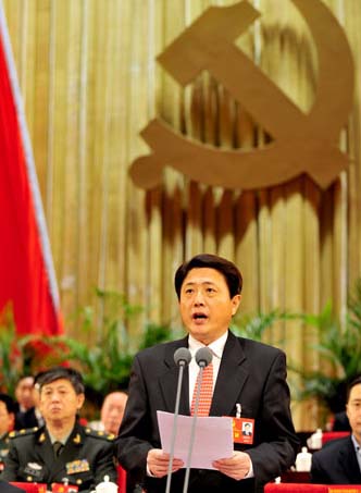 王三运代表十一届省委向大会作报告 刘伟平主持大会