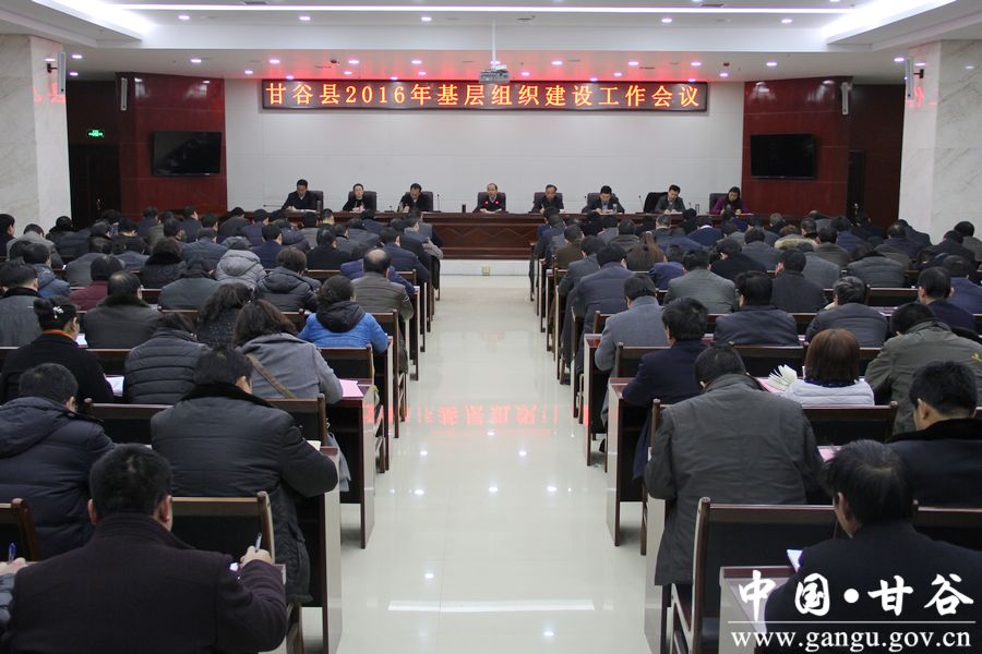1月22日,甘谷县召开2016年基层组织建设工作会议。县委书记贾忠慧主持会议并讲话;市委组织部部务委员高建勇,县委副书记武建成、徐建华,县委常委谢辉、冯建新、张庆元、潘慧琴出席会议;各乡镇党委书记、副书记、组织干事,县直机关党(工)委书记、副书记,县直部门负责人,以及部分基层“两代表一委员”、党员干部和群众代表共170多人参加会议。