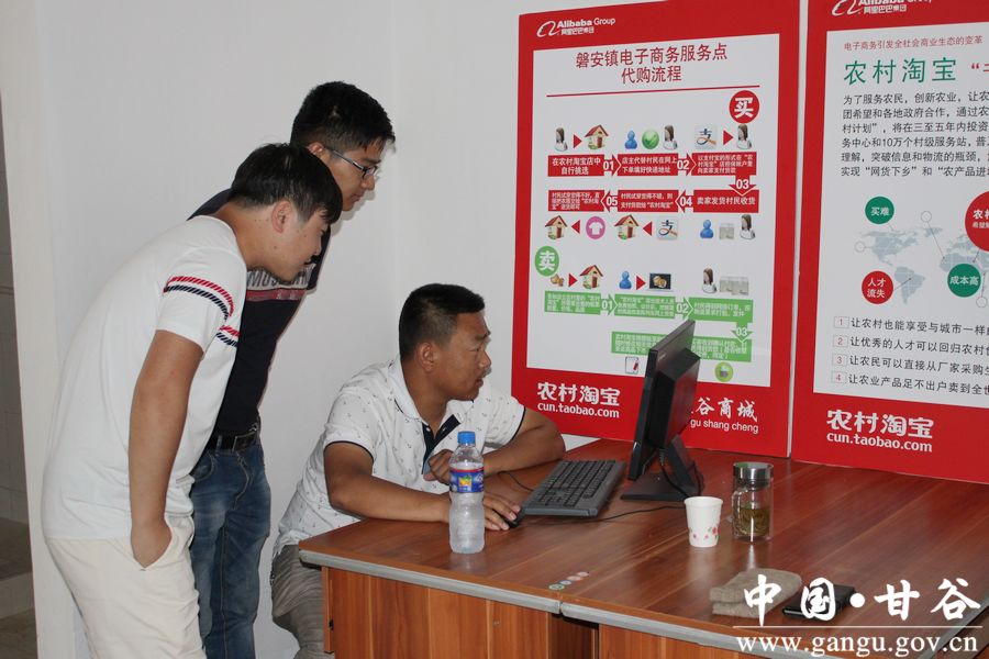 2015年,甘谷县按照“政府引导、企业参与、市场运作、协会服务”的原则,大力推进电商扶贫,建成县有电子商务服务中心,乡镇有电子商务服务站,村有电子商务服务点的三级服务体系;利用与阿里巴巴开展农村淘宝合作的机会,采用PPP模式,建成了淘宝·特色中国·甘谷馆;采取“电子商务龙头企业+合作社+农户”的运营模式,建立了特色农产品资源和供应体系。一系列电商扶贫“组合拳”,让甘谷县精准扶贫搭上了电商快车。