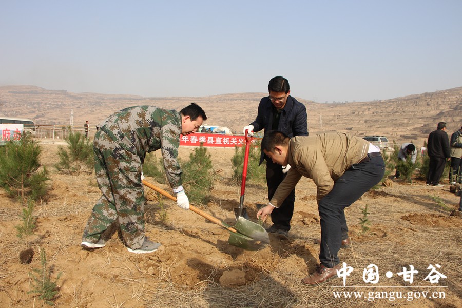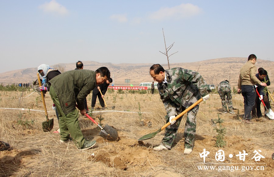 阳春三月,春风和煦,正是植树造林好时节。为了进一步增强干部群众植树护林意识,优化人居环境,改善生态环境,3月10日,甘谷县抢抓当前植树造林有利时节,组织千余名干部群众来到新兴镇雒家村参加植树活动,在全县掀起了植树造林新热潮。