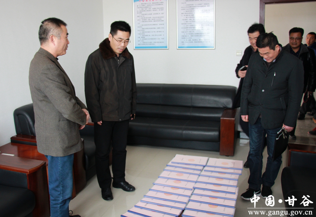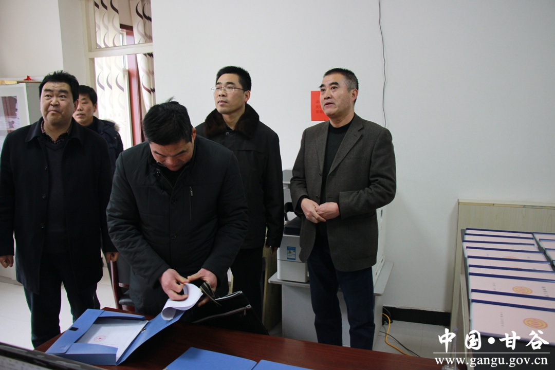 (在西坪镇检查考核) 12月22日,市总工会副主席沈忠带领考核组深入甘谷县,检查考核乡镇(街道)工会规范化建设推进工作,副县长朱德勇,县总工会负责人一同考核。