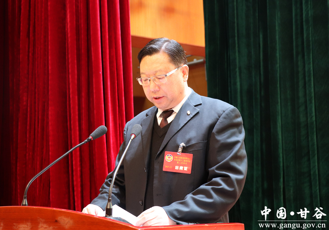 县政协主席马骥代表政协甘谷县第十三届委员会常务委员会向大会作工作报告。他指出,2017年,在中共甘谷县委的坚强领导下,县政协常委会高举中国特色社会主义伟大旗帜,深入贯彻落实党的十八大、十八届历次全会和十九大精神,认真学习贯彻习近平新时代中国特色社会主义思想和视察甘肃时的重要指示精神,坚持团结和民主两大主题,切实发挥社会主义协商民主重要渠道和专门协商机构作用,紧紧围绕县第十四次党代会确定的目标任务,广泛聚集智慧、服务改革发展,认真履行职能、助推民生改善,积极协调关系、促进社会和谐,实现了十三届政协工作的良好开局。