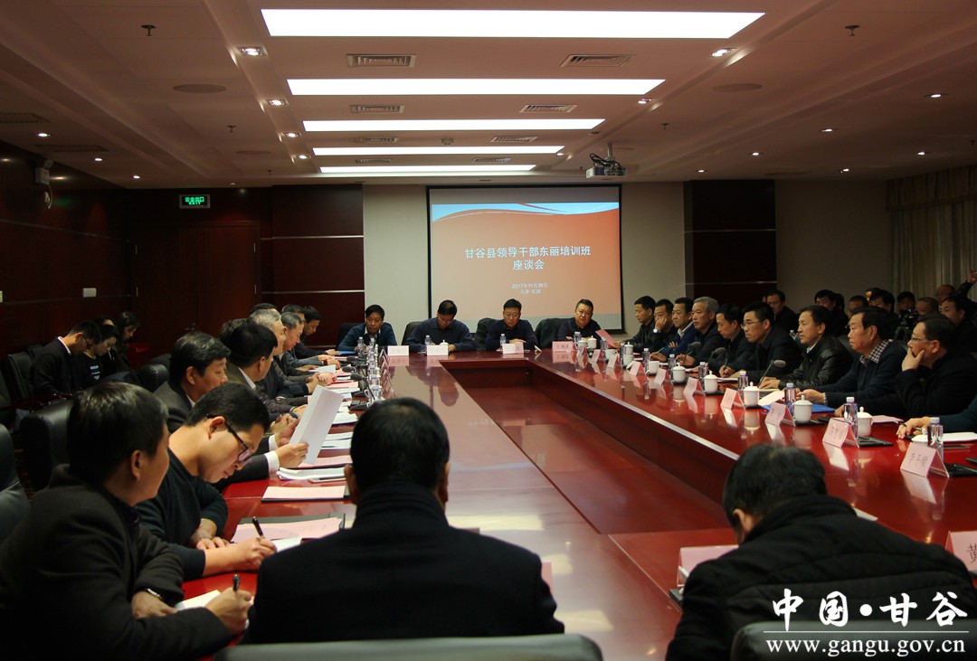 11月26日,甘谷县领导干部东丽培训座谈会在东丽区合作交流办召开。东丽区委书记尚斌义出席会议并讲话,区委常委、组织部长郝树民主持会议。 副区长杨灏,区政协副主席、华明街党委书记郑立;甘谷县委常委、组织部长冯建新,县人大副主任王金生、副县长朱德勇、县政协副主席陈旭出席座谈会。东丽区委组织部、区委党校、区交流办有关负责人及我县52名参训学员参加座谈会。