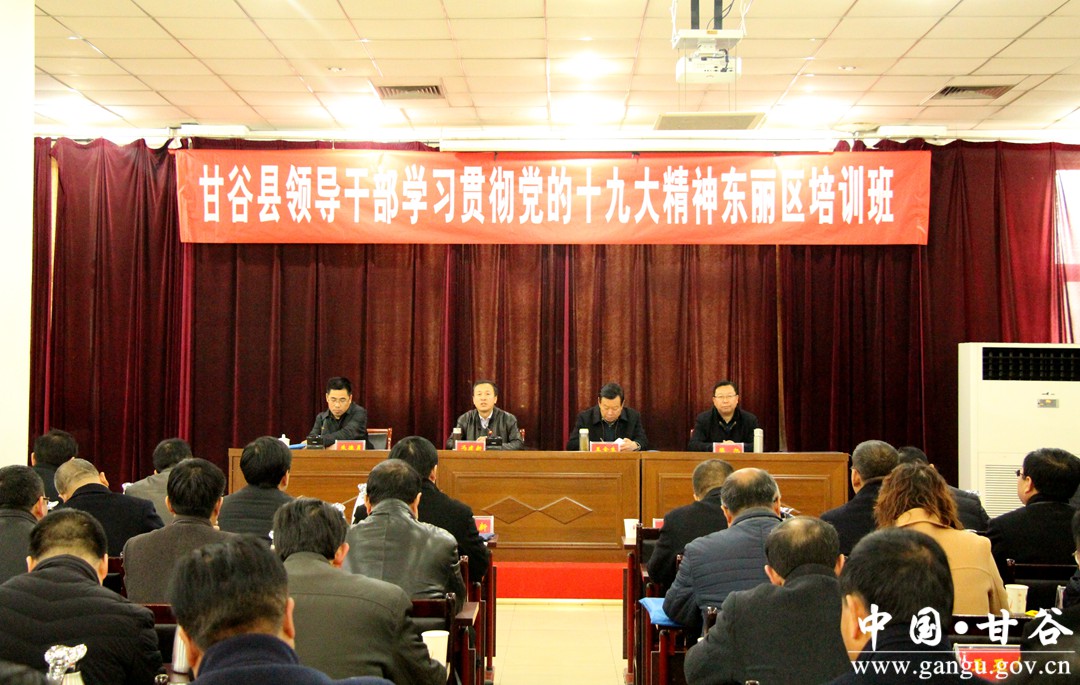 (县委常委、组织部长冯建新讲话) 冯建新在讲话中指出,本次培训班是在脱贫攻坚关键时期甘谷县与东丽区携手举办的第一期领导干部培训班,对于学深吃透党的十九大精神,全面提升领导干部理论素养和驾驭工作的能力水平意义重要。参训人员要珍惜学习机会,认真学习党的理论创新成果,全方位学习东丽区先进的发展理念、发展模式和发展成效。要学用结合,找准东丽区先进经验与我县客观实际的结合点,找准改进和推动工作的着力点,进一步转变思想观念,拓宽视野,提升工作能力。要从严要求,严格遵守培训纪律,严格服从统一管理,树立良好形象。 据悉,本次培训班由东丽区委组织部、区委党校主办,为期7天,以甘谷县各乡镇党政正职、各单位负责人和甘谷县赴东丽区挂职年轻干部为重点培训对象。邀请南开大学、天津大学、天津市委党校、东丽区委党校等院校知名专家学者授课,重点讲解党的十九大精神、领导理念与领导艺术、区域经济发展与转型升级、城市建设与管理、电子商务与乡村旅游等内容,学习先进的发展理念和成功经验,进一步提升领导干部决战脱贫攻坚、发展县域经济的能力水平。