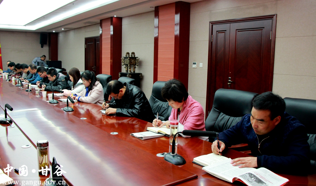 马骥指出,习近平总书记所作的报告,是一篇闪耀真理性光辉、彰显旗帜性力量、蕴含历史性飞跃、具有普遍性意义的马克思主义纲领性文献,是思想金山、理论富矿、行动纲领,充分体现了以习近平同志为主要代表的新时代中国共产党人背靠人民、脚踏大地、勇往直前、无坚不摧的坚定自信和坚强决心,必将在中国共产党执政史、中华民族发展史、世界人类进步史上产生革命性的重大影响、留下划时代的光辉印记。党员干部要将学习贯彻十九大精神作为当前和今后一段时期的首要政治任务,既要原原本本学、反反复复学,做到知其然;又要带着问题学、联系实际学,做到知其所以然,真正把十九大精神学深学透、融会贯通,切实用新思想、新理论、新办法武装头脑、指导实践。 马骥要求,党员干部要始终坚持把讲政治摆在首要位置,坚持把“始终对党绝对忠诚,坚决与以习近平同志为核心的党中央保持绝对一致”作为思想方针、政治纪律、组织原则、实践标准,推动“两个绝对”逐步在党员干部群众中入脑入心。要强化和保持政治定力,始终坚持把践行“两个绝对”作为学习贯彻习近平新时代中国特色社会主义思想的最根本要求、坚持不懈地用习近平新时代中国特色社会主义思想守根护魂、补钙壮骨。要把学习贯彻习近平新时代中国特色社会主义思想作为终生必修课,切实强化理论武装的立场、标准、强度、实效,使习近平新时代中国特色社会主义思想入脑入心、增智促行。要以习近平新时代中国特色社会主义思想武装头脑、凝聚力量,把党的十九大提出的新理念新论断、确定的新任务新举措,转化为聚力脱贫攻坚、做好本职工作,加快建设富裕文明和谐新甘谷的实践成果,让习近平新时代中国特色社会主义思想在甘谷大地生根、开花、结果。