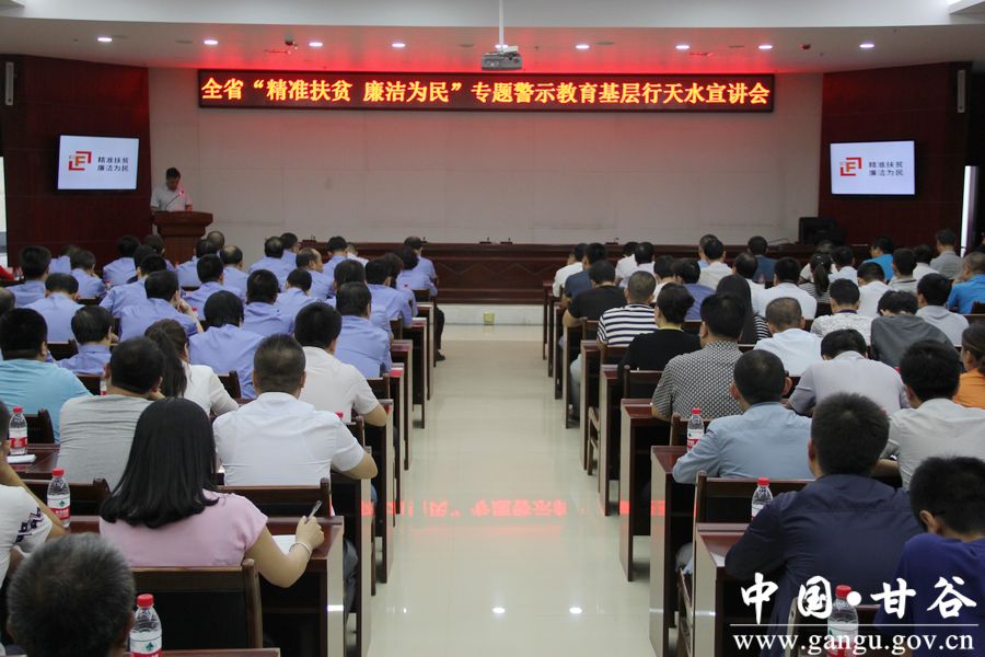 为深入推进集中整治和加强预防扶贫领域职务犯罪工作,8月26日,全省检察机关、扶贫部门“精准扶贫、廉洁为民”专题警示教育基层行天水宣讲会在甘谷举行。省检察院预防处处长张泽武,市扶贫办纪检组长魏银虎,市检察院副检察长张明轩,市检察院职务犯罪预防处处长王骅,副县长葛彦迪,县检察院检察长高保德出席宣讲会;市涉农部门分管领导,各县区检察院、扶贫办负责人,各乡镇分管领导、纪委书记、扶贫专干、检察联络员及县检察院全体干警共计300多人参加会议。