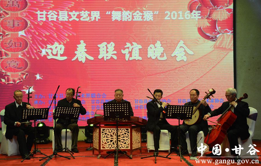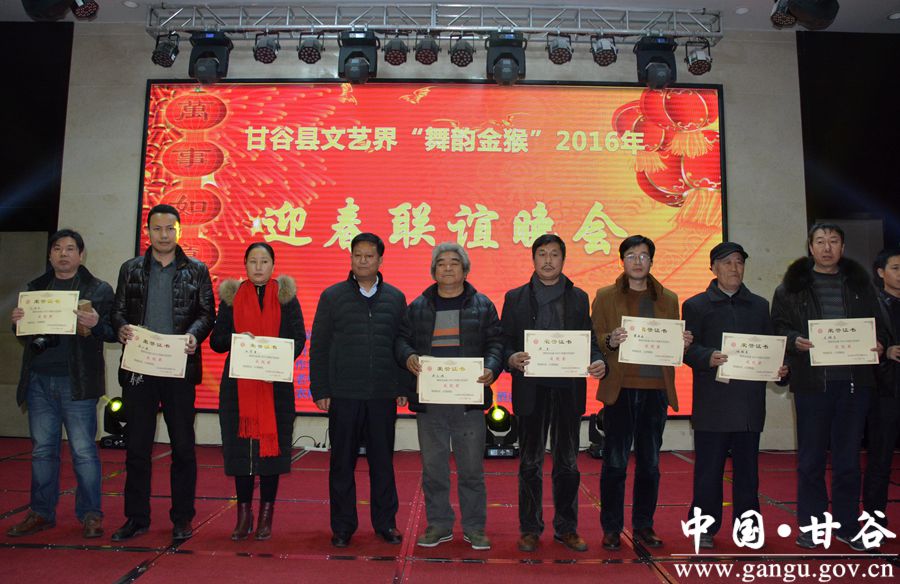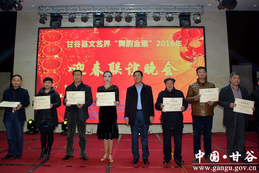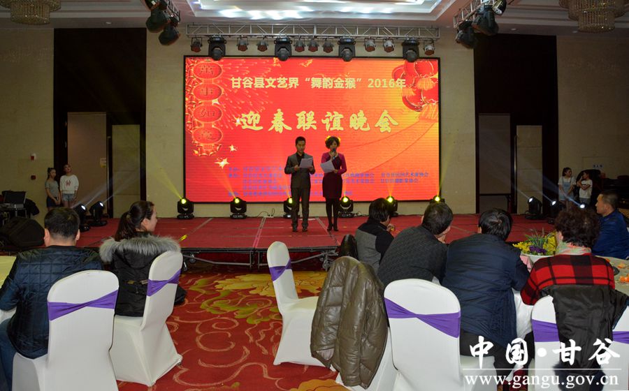 1月14日晚,甘谷县赤城国际大酒店大厅内灯火璀璨、欢歌笑语,由县文联主办的“舞韵金猴”全县文艺界迎春联谊晚会在这里盛装演出。