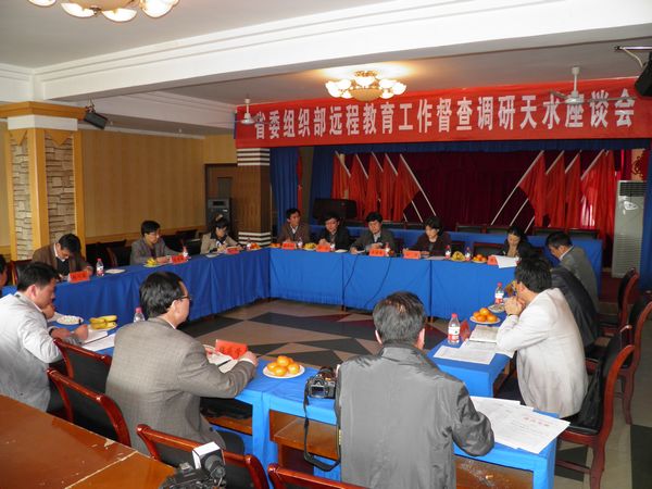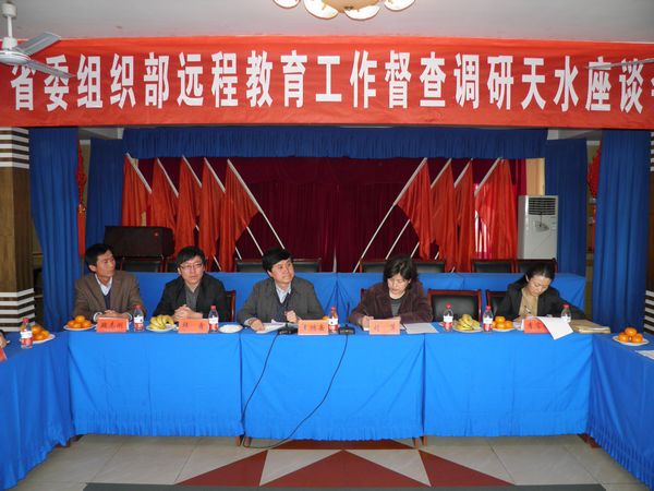 4月12日,省委组织部远程办副主任刘萍、省远程办主任科员李宸孝、副主任科员韩鑫一行检查指导甘谷县农村党员干部现代远程教育工作。市委组织部副部长王鸿岳、县委副书记赵晓东、市委组织部干部监督科科长赵继文、市委组织部电教室主任魏志刚陪同检查。